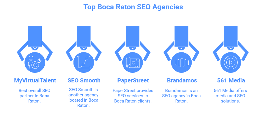 Don’t let your competitors take all the traffic while your business stays hidden. A smart SEO plan can bring more customers, better leads, and long-term growth. Reach out to one of these trusted agencies to get started. Call MyVirtualTalent for free Consultation today and discover how the right Boca Raton SEO expert can take your website to the next level!
